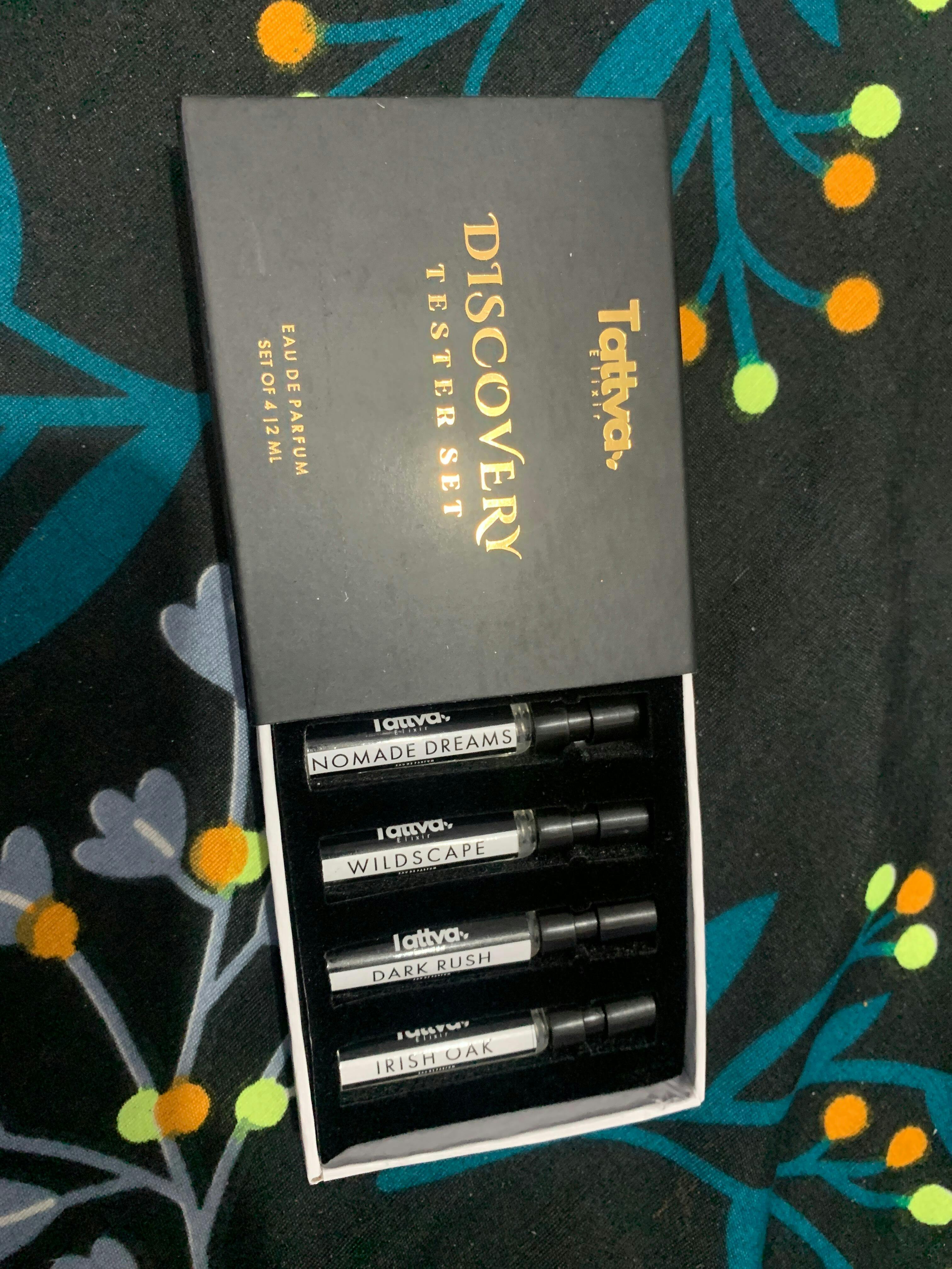 Step into the world of refined elegance with the Tattva Elixir Perfume Tester Kit. This curated collection features four signature scents inspired by high-end fragrance houses, offering a diverse range of oriental, woody, floral, and fresh notes. Discover your signature scent before investing in the full-size bottle.