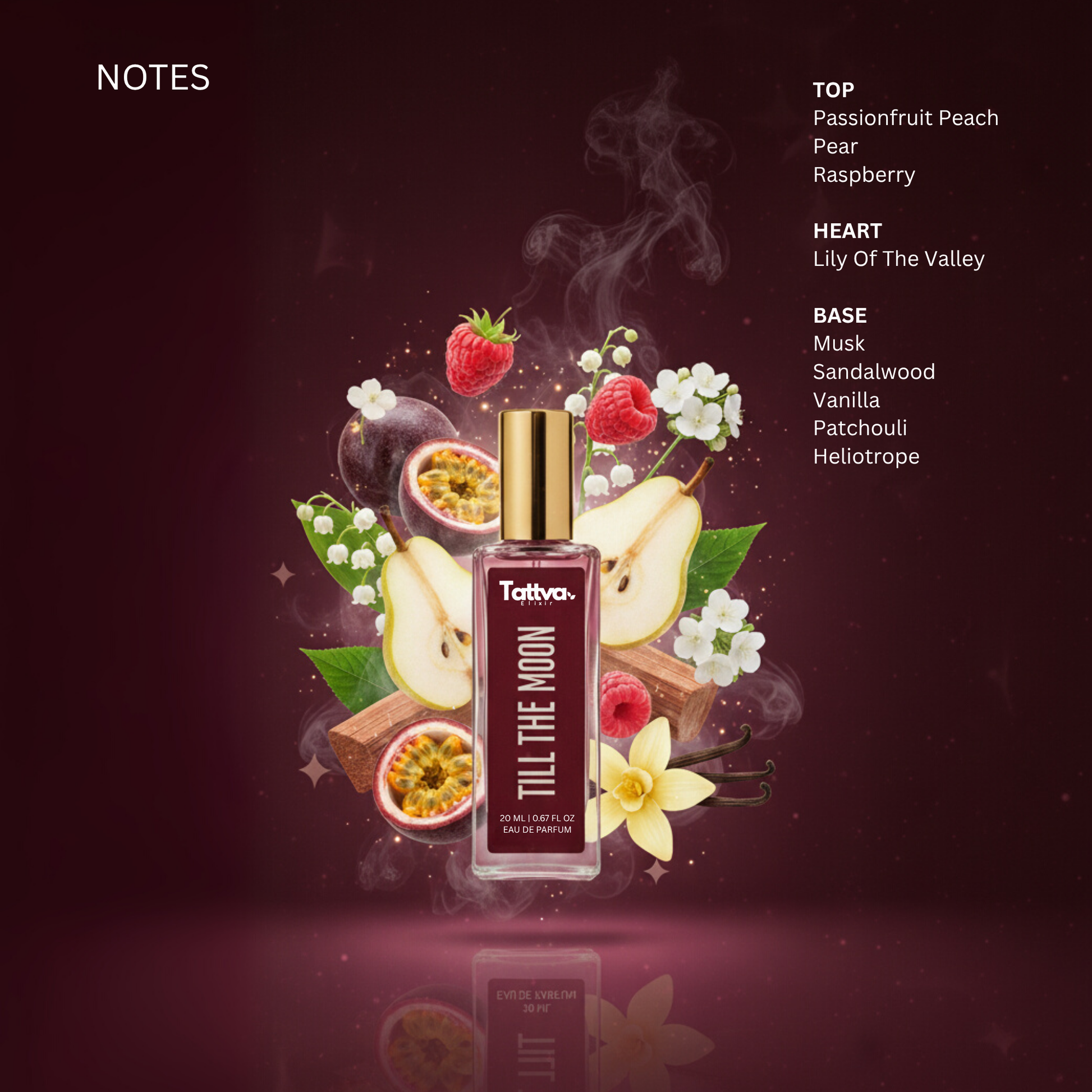 Inspired by bold self-expression and the magic of faraway dreams, Till The Moon is a radiant unisex blend of lush fruits, soft florals, and warm, musky woods. It opens with a juicy burst of passionfruit, peach, and pear β instantly uplifting. A smooth heart of florals and creamy sandalwood leads into a rich, velvety base of musk, vanilla, and amber β indulgent, addictive, and endlessly enchanting.
